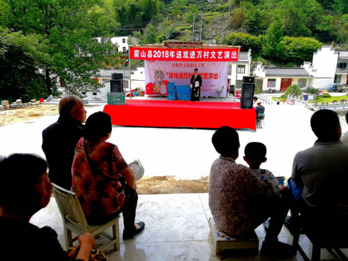 据悉,此次活动由霍山县文广新局主办,巢湖市桃源艺术团承办。该活动得到了当地党委、政府,镇文化站以及各村、社区的重视和大力支持。整个演出历时六天,共演出11场次。(刘伟)