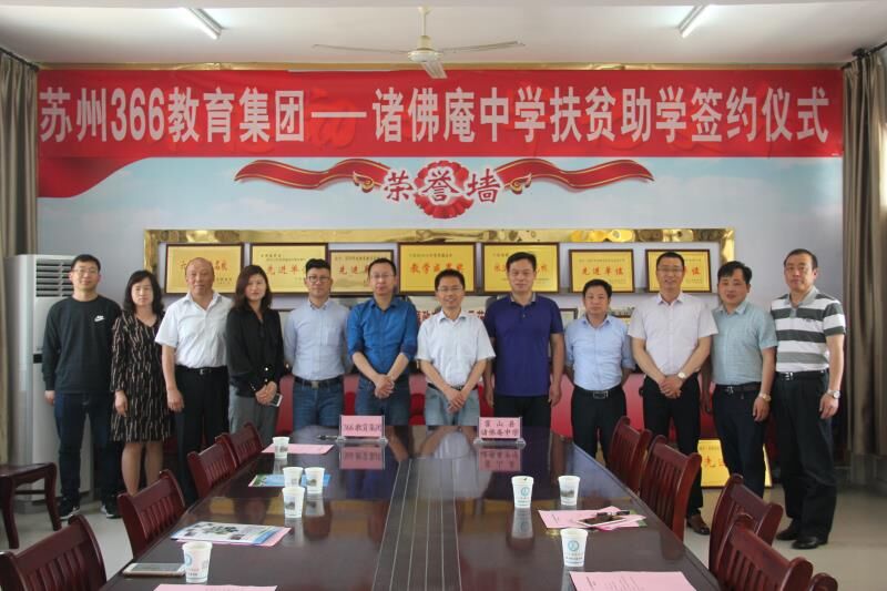 近日,苏州366教育集团董事长周扬海一行在县委常委、副县长檀竹茂的陪同下来到诸佛庵中学,参加“苏州366教育集团---诸佛庵中学扶贫助学签约仪式”。