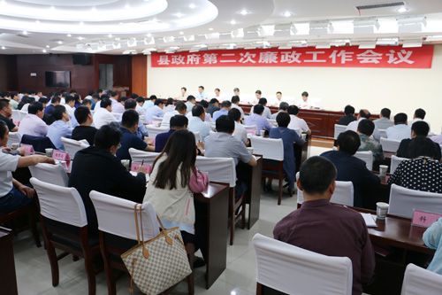 为认真贯彻落实国务院、省、市政府廉政工作会议精神,5月23日,县政府召开第二次廉政工作会议,对全县政府系统廉政建设和反腐败工作进行全面安排部署。县领导项跃文、陈明龙、潘传才、檀竹茂、李志刚、纪昌国、朱静出席会议。县委常委、副县长潘传才主持会议。