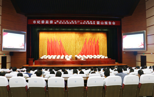 5月24日,市纪委监委来霍山举办“廉洁六安清风行”主题宣讲暨“党纪法规教育年”活动专题辅导报告会。县领导项跃文、尹如江、董永来、王光军、陈明龙、华心扬、李燕、郑为鹏、谢明、郝晓武、纪昌国、朱静、廖华、彭光存、叶登江,以及各县直单位、乡镇(园区)党委、纪检组织负责同志等300多名党员干部聆听了报告。