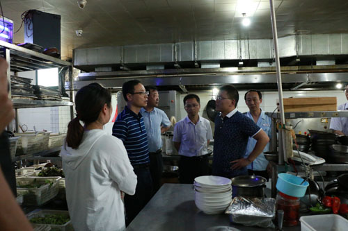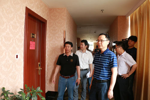 董永来一行先后来到上岛宾馆、山城宾馆和尚客优宾馆考生住宿地,实地查看考生们的住宿条件、饮食卫生和消防安全等事宜。