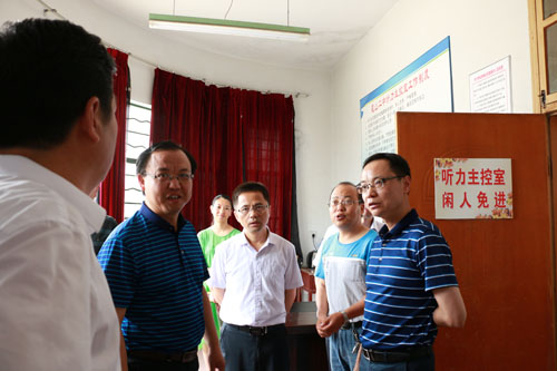 在霍山二中、霍山中学考点,董永来一行仔细查看校园环境状况,听取了学校相关负责人对高考准备情况的介绍,重点查看了英语听力主控室及电力设备。