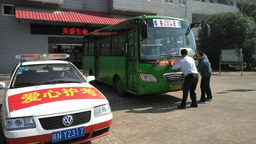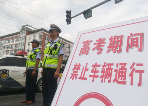 为确保高考顺利进行,县公安、城管、供电、交运等部门工作人员早早来到各考点,设立警示标牌,维持道路交通秩序,为考生保驾护航。此外,一些志愿服务队、商家、企业也自发来到考点门前,开展爱心送考,设立爱心服务台,为考生和家长提供方便。