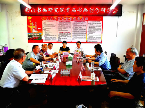 6月10日,西山书画研究院书画创作研讨会暨作品交流会在漫水河镇举行。20余位霍山籍省、市知名书画家应邀参加活动。 研讨会围绕“弘扬国粹、传承民艺、以文化人、惠民利民”这一主题,分别就西山文化、传统书画艺术创作等相关课题进行研讨。会议还现场进行了关于书法的传承和教育、弘扬国粹文化、助推书艺发展等学术交流发言。