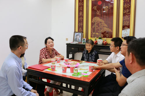 郑保华一行来到程世莲老人家中,与老人亲切交谈,详细了解其生活起居、身体状况和家庭情况,以及茶叶和油茶种苗发展情况,并送上节日的祝福和慰问金。