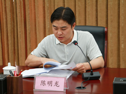 会上,陈明龙宣读了《关于做好全县村和社区“两委”换届工作的实施方案》。