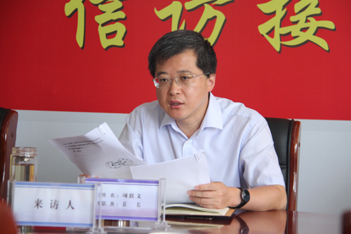 接访过程中,项跃文仔细查阅每一位来访者的材料,面对一件件关乎群众切身利益的事,项跃文耐心倾听,不时向部门负责人询问了解情况,核实问题,并就如何解决问题提出意见。