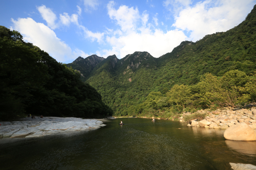 7月11日,雨后初晴的的千年古秀殷氏寨,显得更加美丽妖娆。群山竞秀,水天一色;碧水泛舟,波光点点。人与自然,和谐相处。