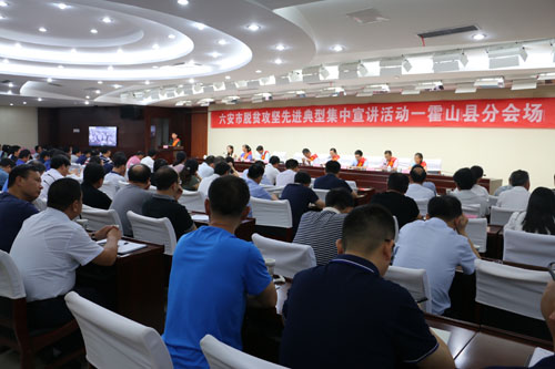 7月25日,全市脱贫攻坚先进典型巡回宣讲报告团来霍山县开展宣讲。宣讲报告会以电视电话会形式召开。县领导王光军、李燕、纪昌国、彭光存以及县直各单位主要负责人,“十大工程”行业单位主要负责人、分管负责人,县扶贫移民局全体人员等出席县主会场会议。各乡镇、村全体干部,扶贫工作队全体人员,以及部分农村党员、贫困群众和帮扶企业代表参加乡镇分会场会议。