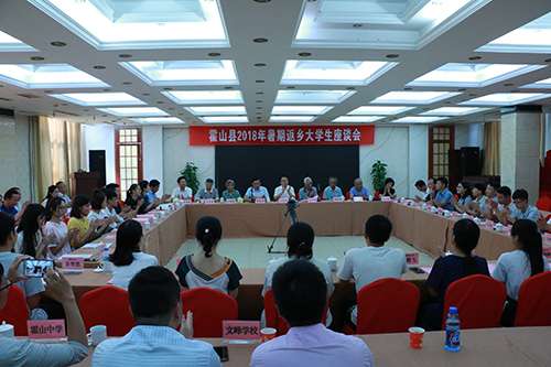 7月26日,我县举办2018年暑期返乡大学生座谈会。县委常委、组织部长王光军,县关工委主任邵必贵等出席会议。来自清华大学、北京大学等高校的20余名霍山籍大学生参加座谈。