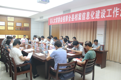 7月27号,县人大常委会主任李玉武一行视察全县档案信息化建设工作,县委常委、副县长王焱,县人大常委会副主任金正开、李燕、郑为鹏、谢明参加活动,县档案局负责人,县人大办、研究室、教科文卫工委负责同志陪同。