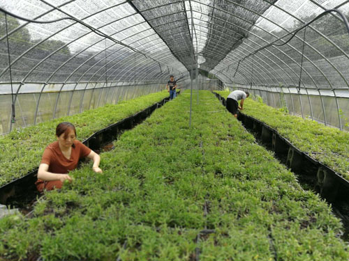 8月5日,李平在石斛种植基地进行除草作业。