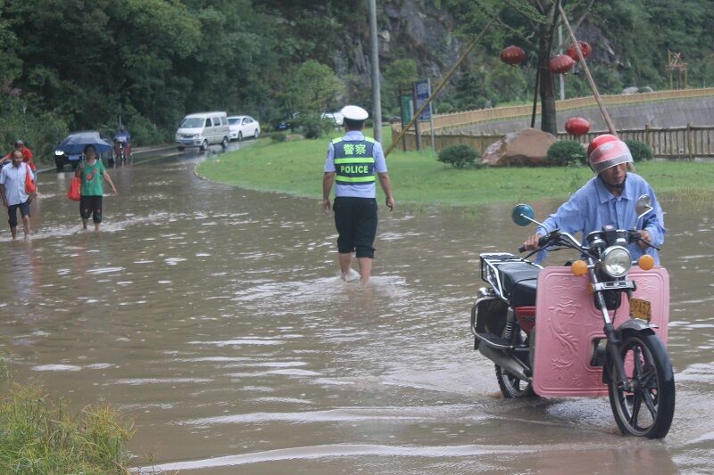 久旱逢甘雨。一场暴雨缓解了旱情,同时也给山区道路交通带来了隐患。8月13日14时许,霍山县下起了暴雨。县公安局交管大队漫水河中队中队接到群众报警:省道318线上土市镇陡沙河村牡丹河路段积水,严重影响车辆安全通行。