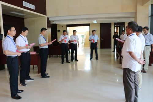 上午9时许,县委书记梁国金,县委副书记、县长项跃文等县领导来到投票点,认真听取工作人员就有关选举事项所作的说明,领取选票,郑重地填写,并依次来到投票箱前,以普通选民的身份,投下了自己神圣庄严的一票。