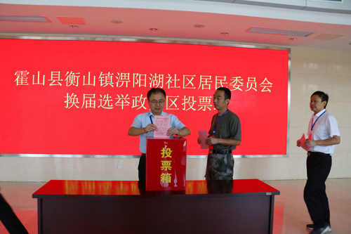 9月9日上午,县领导梁国金、项跃文、董永来、王光军等参加了衡山镇淠阳湖社区两委选举投票工作。
