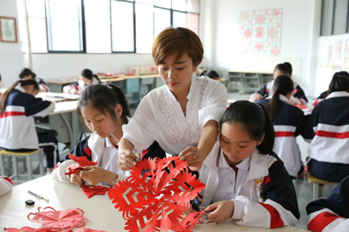 在她的悉心指导下,很多学生很快就掌握了剪纸的基本技法,并进而爱上了剪纸。她精心制作的《剪纸》课例荣获六安市学科德育精品课程初中组二等奖,《走进民间美术——剪纸》在2015-2016年度“一师一优、一课一名师”活动中荣获部级优课,剪纸作品《剪纸文化进校园》入选省总工会“中国梦.劳动美.安徽篇章——喜迎党的十九大”安徽省职工书画摄影集邮联展。在2018年“六安市第六届中小学生艺术展演活动”荣获学生艺术实践工作坊方案(剪纸工作坊)县市第一名。她还成功策划组织了霍山文峰学校2018年度美术班教学成果展,400多幅师生作品参展,全方位展示了学校美术教学的丰硕成果。