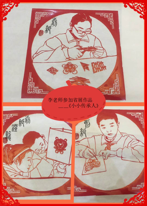 剪纸是中国传统的民间艺术。幼时的李玲玲就对传统剪纸艺术产生了浓厚的兴趣。工作以后,她开始利用业余时间专心学习剪纸技艺,潜心研究技法,决心要传承和发扬剪纸这门传统艺术。为了开阔自己的视野,提高剪纸技法,她经常利用寒暑假,外出遍寻剪纸名家去拜师学习。较好的美术功底,心灵手巧,加上虚心好学和勤学苦练,李玲玲的剪技艺长进飞快。几年前,学校开设特色校本课程,她主动请缨,申请开办手工剪纸课,要把自己潜心修得的剪纸技艺传授给学生。在学校的大力支持下,文峰剪纸工作坊很快创办起来了,吸引了很多学生报名学习。