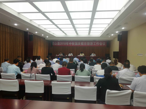 9月21日下午,霍山县召开2018年中秋国庆假日旅游工作会,县委常委、宣传部部长张润之、县人大常委会副主任谢明以及县政府办、县旅游局负责人出席会议,县旅指委成员单位、各乡镇及重点涉旅企业60余人参加会议。