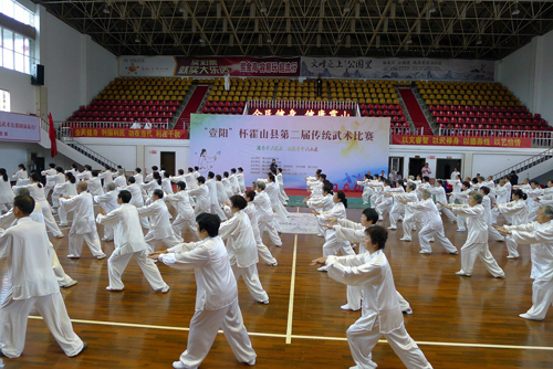 喜庆丰收迎中秋,全民健身过中秋。9月22日,由县体育总会主办、县太极拳协会承办、霍山县壹阳汽车服务有限公司冠名的“壹阳”杯第二届传统武术比赛在县体育馆隆重举行。