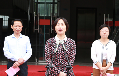 县人大常委会副主任李燕宣布书画展开展。