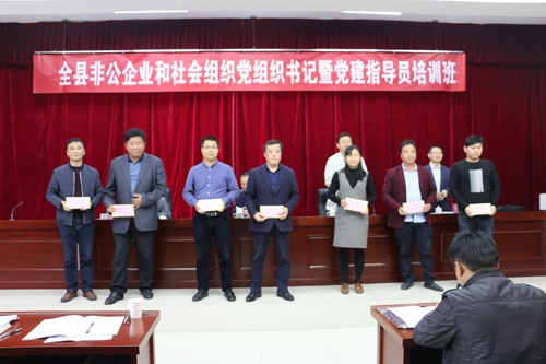 开班式对2017年度全县优秀非公企业、社会组织党组织书记暨党建指导员进行了表彰。