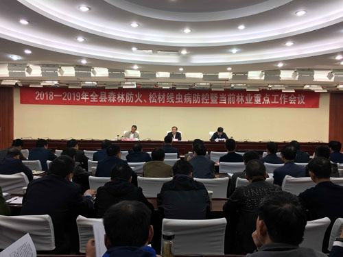10月19日上午,2018-2019年全县森林防火、松材线虫病防控暨当前林业重点工作会议召开。县护林防火指挥部成员单位、各风景区管理处及开发公司主要负责人,县林业局班子成员及二级机构负责人,2017-2018年度森林防火先进单位及个人,县乡森林消防专业队队长参加会议。县领导朱卫东、纪昌国、彭光存出席会议。