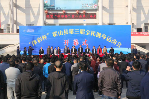 11月2日,霍山县第三届“体彩杯”全民健身运动会在县体育馆广场隆重开幕。县领导李玉武、王光军、檀竹茂、王焱、张润之、李燕、朱静、叶登江出席开幕式。副县长朱静主持开幕式。