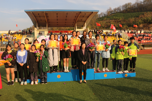 11月24日,为期三天的县第九届中学生田径运动会圆满闭幕。县委常委、宣传部长张润之,副县长朱静出席闭幕式并为获奖学校和学生颁奖。