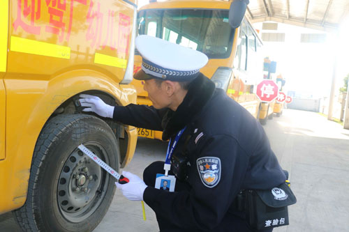 检查中,车管所民警对校车管理台账、校车驾驶人资质、校车运行线路以及相关的出行工作制度进行了详细检查,认真核查了车辆年检信息及车辆保险情况。在对校车安检中,民警重点检查了校车标志、灭火器、安全带、应急锤、胎压、车内外监控系统、卫星定位装置等,对存在安全隐患的校车提出了当场整改意见。此外,民警结合当前冬季天气,要求校方负责人和驾驶员要掌握天气变化情况,行车中严格遵守交通安全法律法规,注重安全驾驶每一个细节,牢固树立安全文明意识,切实做好对学生上、放学交通安全的冬季防护措施,确保安全做到万无一失。(杨锟)