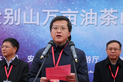 12月23日,“健康安徽”2018环江淮万人骑行大赛霍山站暨中国.霍山大别山万亩油茶山地自行车越野挑战赛在风景如画的霍山县但家庙镇观音岩村激情开赛。省体育局局长高维岭、省新媒体集团总经理章理中、省经济和信息化厅副厅长杨明、副市长王岚、部分省及市直单位负责人,县领导项跃文、张润之、李燕、叶登江等出席开幕式。县委常委、宣传部长张润之主持开幕式。