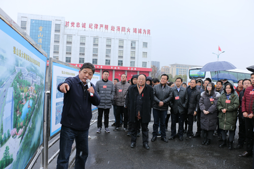 12月28日上午,瑞雪轻舞,出席县政协十届三次会议的政协委员们在会议间隙,视察观摩了全县城市建设暨工业经济发展情况。县领导李志刚、纪昌国、廖华、郭群英、彭光存、方庆林等参加视察。