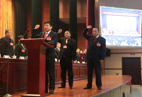 赵珞代表新当选人员作表态发言