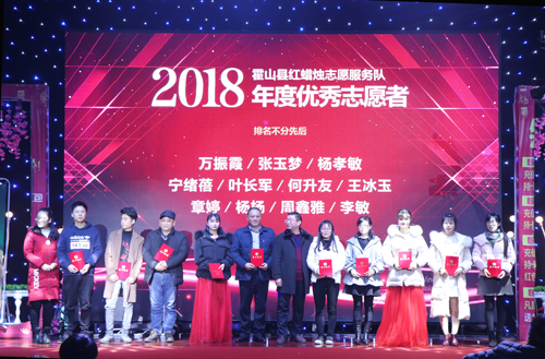 现场气氛热烈、激情洋溢,在热烈的掌声中,年会对受助人及贫困学生进行了爱心捐赠,并现场颁发了2018年度爱心企业团队、爱心商家、爱心个人和优秀志愿者牌匾和证书。年会现场还举办了丰富多彩的文艺节目表演,志愿者代表纷纷走上舞台,用手语、舞蹈等方式,表达了积极参与志愿服务、向公益事业献爱心的极大热情。在感受到浓浓的爱意后,观众们纷纷表示,今后要学习红蜡烛志愿服务队的崇高精神,发扬守小家、为大家的精神,做到不忘初心,携手奉献爱心,为建设美丽新霍山作出应有的贡献。(余经晓)