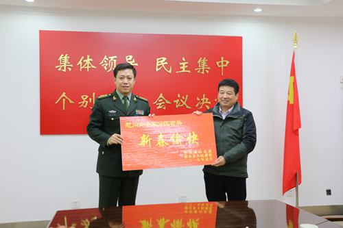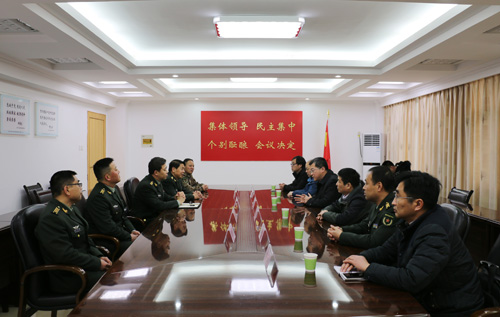 在新春佳节即将来临之际,1月31日,县委书记项跃文,县委副书记、县长赵珞,县委常委、县人武部政委张德忠,副县长郝晓武率县直相关部门负责人,前往慰问六安军分区官兵,与广大官兵畅叙军政军民深情,送去新春的问候和祝福。