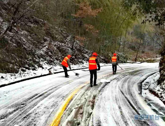 面对突发与灾害性天气,霍山公安、交通、公路等多部门联动,当地政府积极互动,采取属地管理,科学应对等措施,组织当地干部群众,公安干警上路除冰扫雪,指挥疏导交通。全力保障省际交通平稳运行,安全畅通。(文/图 刘伟)