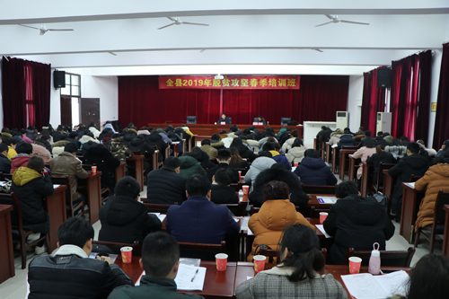 纪昌国作开班动员讲话。他指出,过去一年,全县基层一线扶贫干部的辛勤付出有力推动了脱贫攻坚工作。春节刚过,全体同志要收心归位、提高认识,认清形势、提高能力,积极投入到培训中来。
