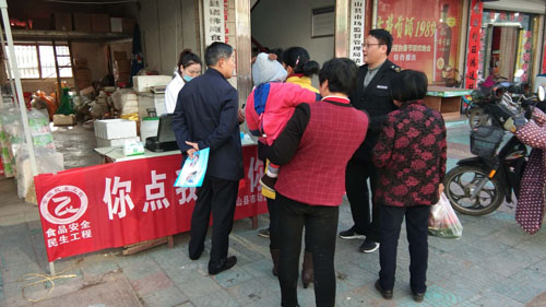 为保障人们群众饮食安全,切实提高群众食品安全意识,引导广大群众支持、参与到民生工程监督中来,3月13日上午,霍山县市场监管局诸佛庵所组织开展了“你点我检、你送我检”开放日活动。活动免费向百姓提供蔬菜、水果、生鲜肉等食品的快速检测服务,邀请消费者和食品经营者参观食品快检室,演示蔬菜农残和瘦肉精的快速检测。同时,现场还开设了咨询台,工作人员面对面给老百姓解答食品安全和消费维权知识。