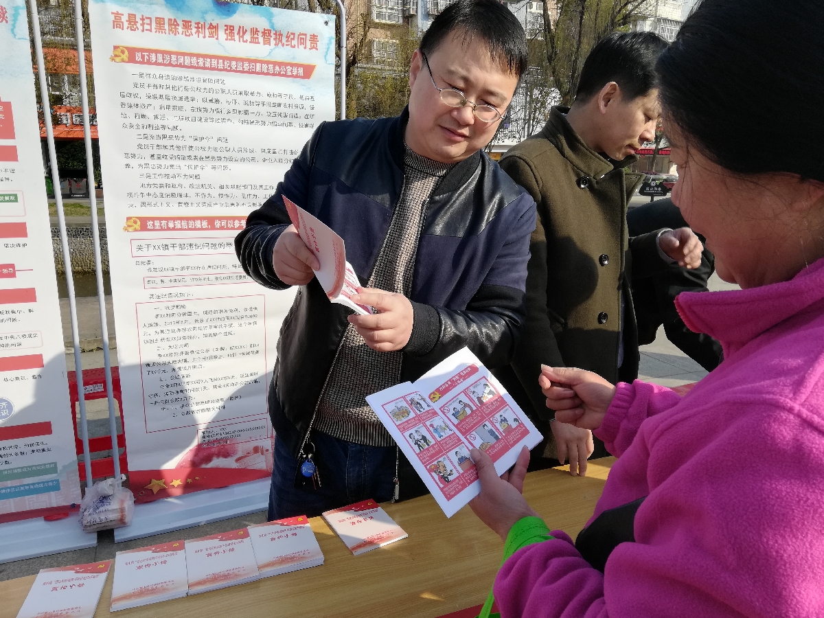 霍山县纪委监委通过开展“纪法在身边”主题宣传活动,向群众宣传扫黑除恶专项行动,并告知详细举报方式,鼓励群众对发生在身边的涉黑涉恶腐败和“保护伞”问题勇敢举报。