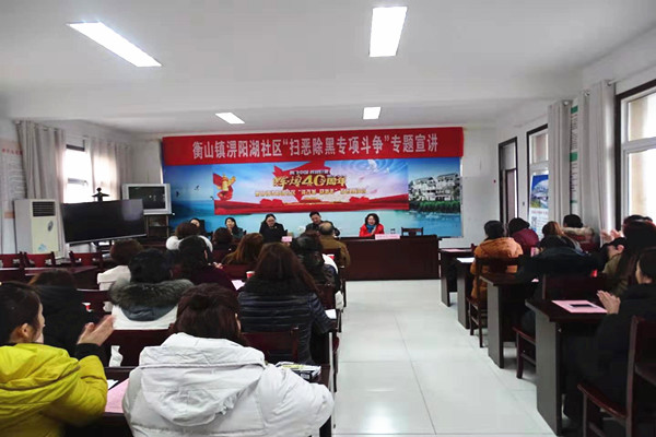 衡山镇组织扫黑除恶宣讲团走进社区,开展扫黑除恶专项斗争集中宣讲活动,全面提升广大群众对黑恶势力犯罪、扫黑除恶背景、意义等的认识,鼓励引导广大群众积极参与支持扫黑除恶专项斗争。