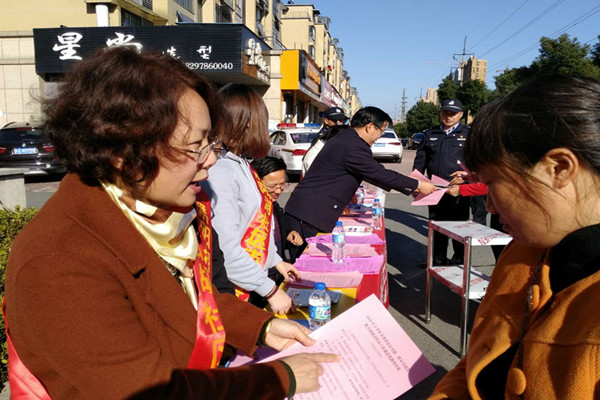 社区工作人员走上街头,通过设置展板、现场讲解、发放宣传资料等方式向群众宣传扫黑除恶工作,并征求对当前社区治安工作的意见建议。
