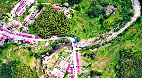 初夏,漫水河镇安家河村境内的安家河宛延而过,宛如一条银色的玉带轻轻缠绕在美丽的小山村的周围。