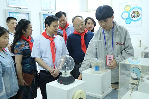 苏昊一行与孩子们进行亲密互动,详细了解了孩子们在校的生活、学习情况,在听取校方有关教育教学工作汇报后,参观了乡村学校少年宫。