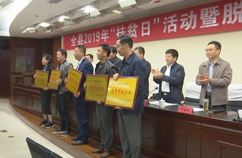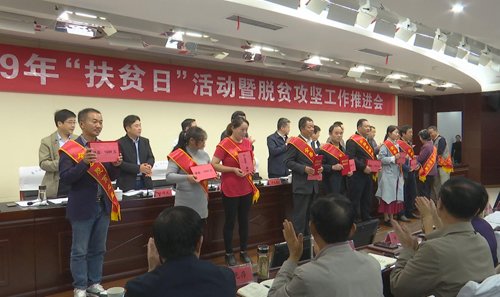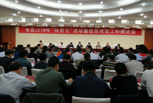10月14日,全县2019年“扶贫日”活动暨脱贫攻坚工作推进会召开,县委书记项跃文出席会议并讲话,他强调,全县上下要坚决把思想和行动统一到党中央的决策部署上来,拿出超常规的毅力、超一流的标准、超顽强的斗志,坚决打赢脱贫攻坚这场硬仗。县委副书记、县长赵珞主持会议,县领导李玉武、尹如江、苏昊、朱卫东、陈明龙、华心扬等出席会议。