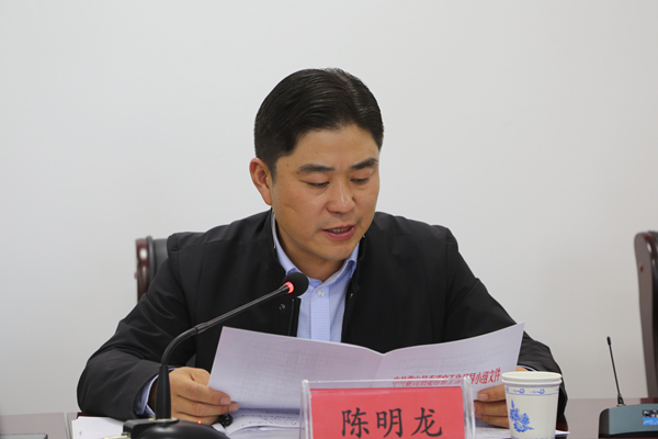 陈明龙宣读《关于印发<中国共产党霍山县第十四届委员会第十轮巡察工作实施方案>的通知》