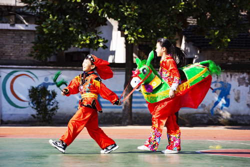 霍山县诸佛庵镇是大别山革命老区核心区域,安徽省第一次民团起义——诸佛庵民团兵变拉开了六霍起义的序幕。诸佛庵镇中心学校是一所百年老校,也是曾经的“列宁模范小学”所在地。为传承诸镇红色基因,弘扬民俗传统文化,发挥学生个性特长,创办优质均衡教育,该校于2018年10月成立校园民俗活动艺术团,激活教师内生动力,整合学校综合实践课程、校本和乡土课程等课程资源,将省“非遗”四弦书、舞龙舞狮、划旱船等极具地方特色的民俗传统文化引进校园,根据学生年龄特征和兴趣爱好,一至六年级629名同学全员参与,组建了22个特色兴趣班,在培养学生学习兴趣的同时,促进了学生个性成长与全面发展。