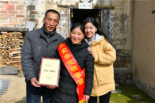 元月19日,获得“六安市2019年文明家庭”的现任霍山县漫水河镇安家河村扶贫专干李娟载誉归来,兴奋地前来迎接她的家人以及镇村干部一起留下了宝贵的镜头。