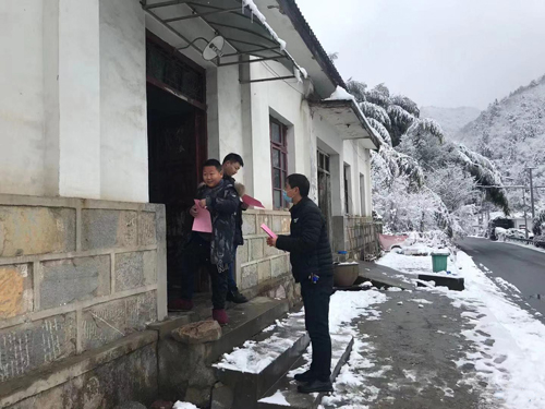 1月26日,一场大雪覆盖了大别山区的霍山县,为了广泛开展有针对性的、群众易接受、易掌握的防治知识和政策宣传,广大基层干部带着宣传单,深入村组挨家挨户走访。大雪阻断了道路,却阻挡不了关爱。
