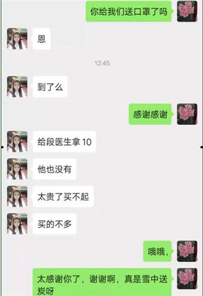 “他们入户宣传,坚守岗位,把口罩给了从外地回来的村民,自己却物资紧缺!我只能买到这200只口罩,希望尽自己的一点绵薄之力,解一时之急,也希望为我们奋战在一线的干部、村医增加一层安全防护的保障。”叶纯兰在电话那头说。
