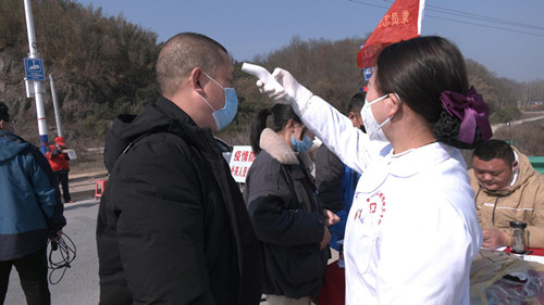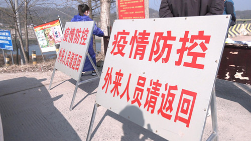 在黑石渡镇黄家畈防疫执勤点,由当地党员干部、医疗、公安组成的党员先锋队已经在这里值守了6个日夜,对外乡人员进行劝返,对本镇本村群众进行登记、测量体温,并在执勤点悬挂张贴宣传标语。