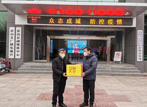 当前疫情进入关键时期,在了解到我县一线记者编辑人员缺少防护物品后,2月2日,霍山县平安大药房为他们送来一批专业口罩,保障一线记者的工作需求,彰显了爱心企业在疫情面前对一线防疫干群的支持。(朱文武 王辉)